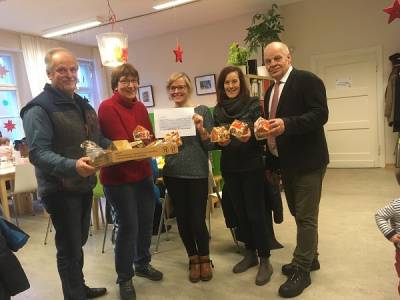 Gute Nachrichten im Gepäck hatten CDU Ratsherr Richard Halberstadt und Mechthild und Alfons Neuhaus von der Gievenbecker Ortsunion für (*) und Karen Paterson vom Mehrgenerationenhaus und Mütterzentrum in Münster-Gievenbeck.